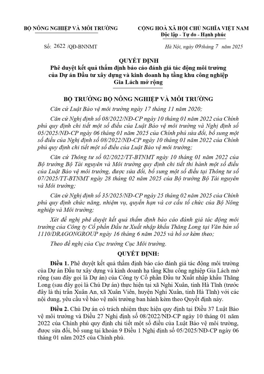 Quyết định ĐTM đánh giá tác động môi trường